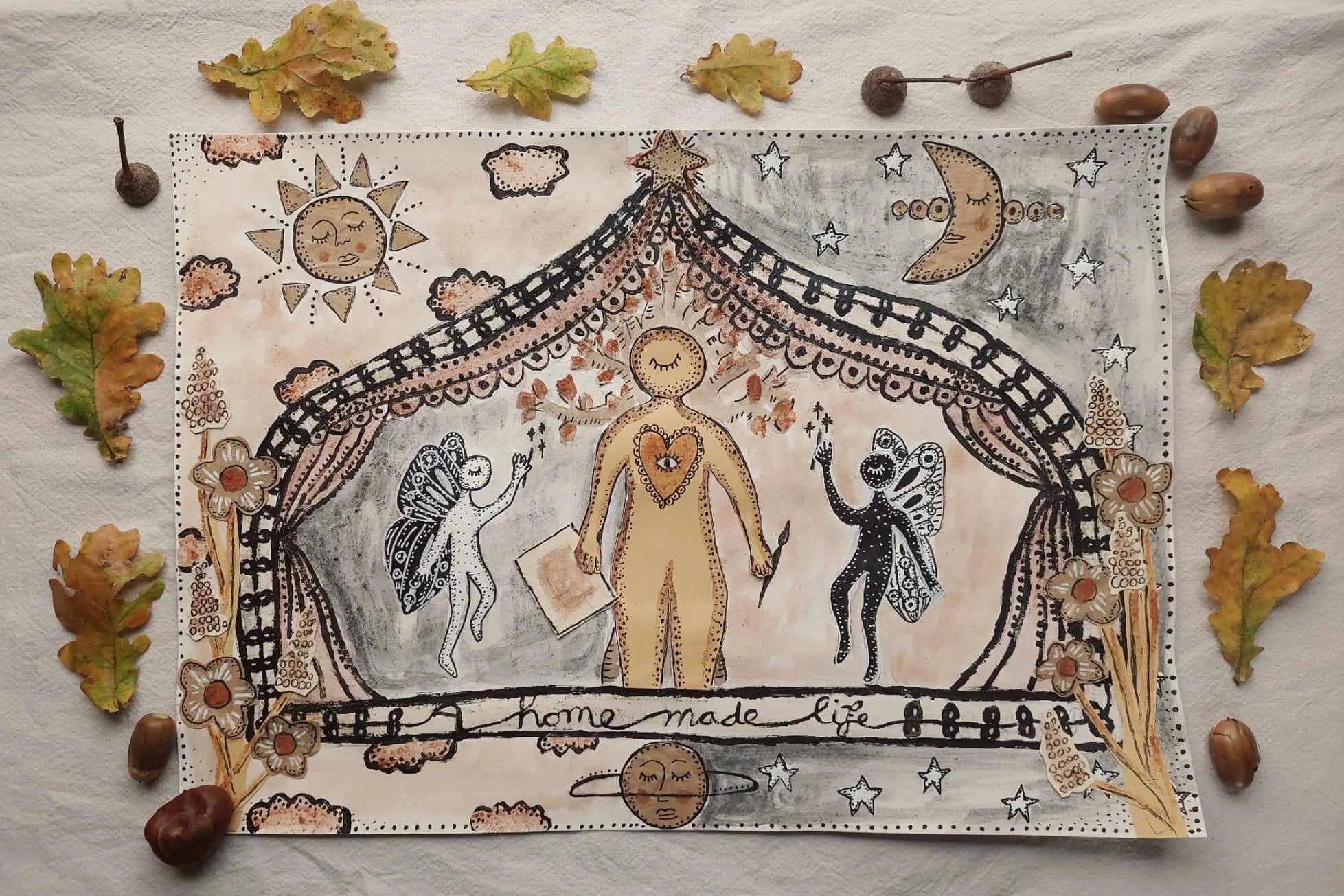 Natural pigments, markers and pencils on 42x59,4cm paper.
