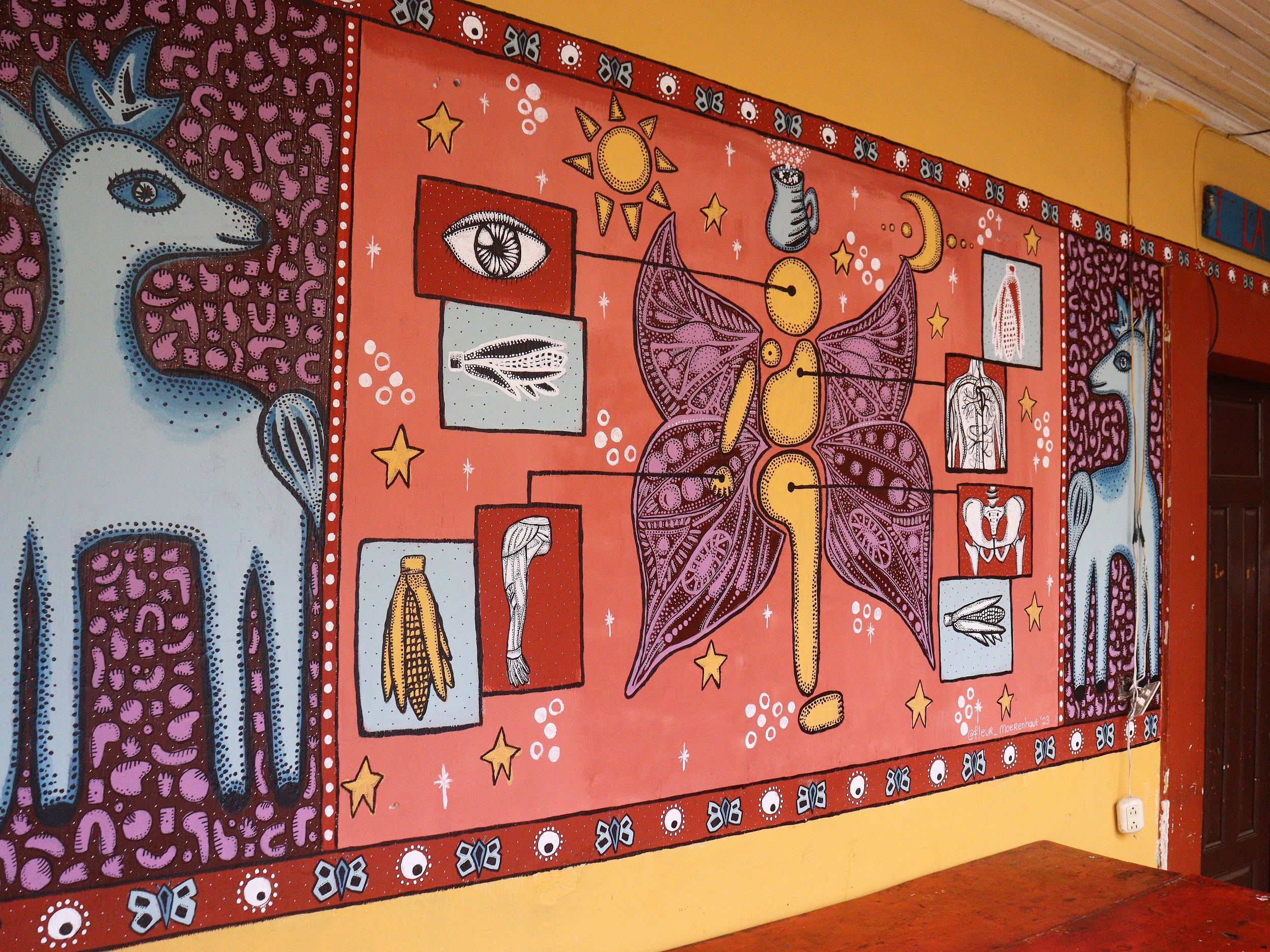 This mural is a mix of symbols that play a big role in the Maya textiles. The...