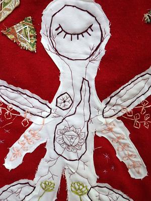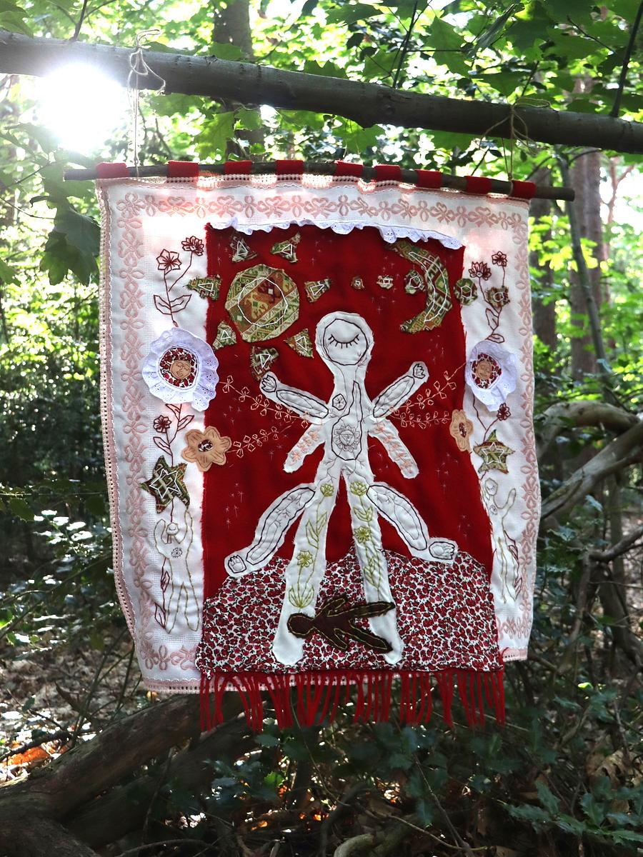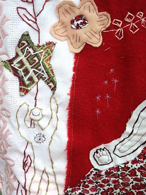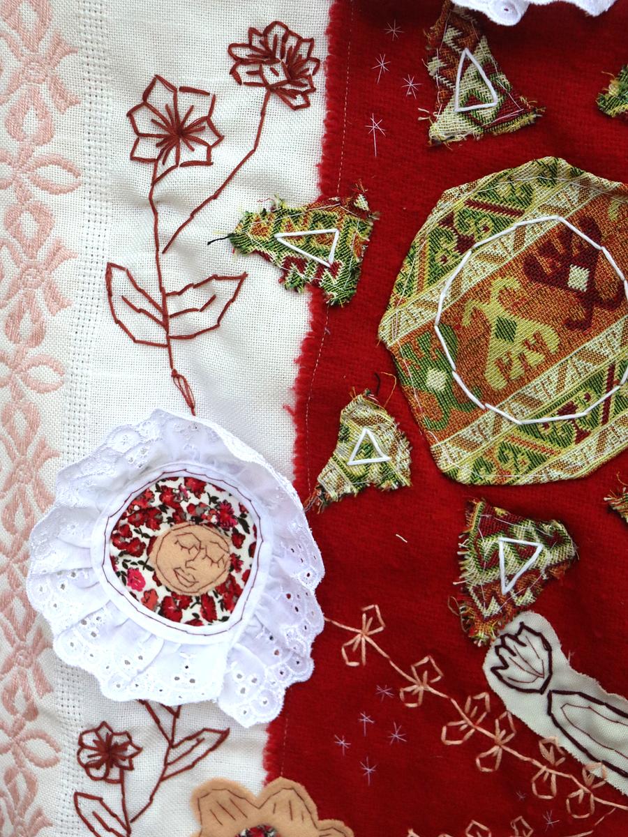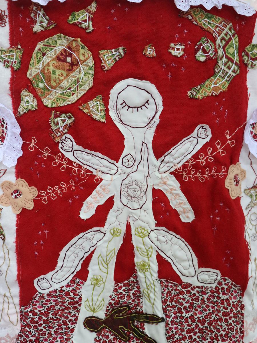 Made with recycled textiles and hand embroidery.