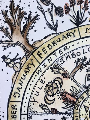 Creating this piece has felt incredibly meaningful and right. Learning about these natural phases and celebrating them has not only helped me reconnect with Nature , but also with my ancestors, whose knowledge and traditions these festivals are rooted in. Many of todayβs holidays are transformations of these older ones: Yule became Christmas, Ostara became Easter and Samhain became Halloween. πππ