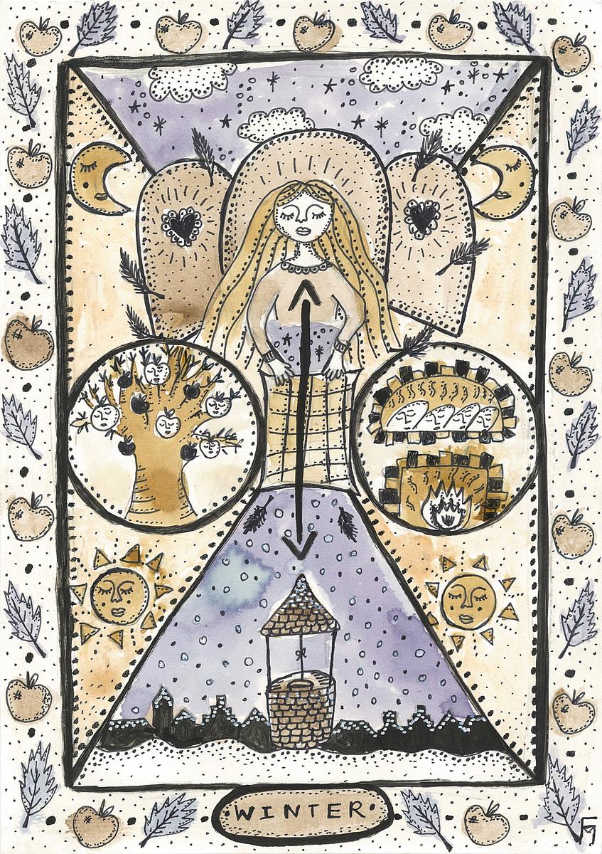 I chose to visualize it through the old folk tale of Vrouw Holle (also known as Frau Holle or Hulda). It is a tale that has survived the erasure of pagan culture brought by Christianity.